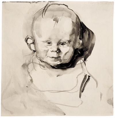 I saw the work of Kollwitz online as I undertook my research for the project. Her work was seen as we walked through the Kollwitz museum. I could see that if I was physically present the space was very appropriate to her work. All the images that were related to one another in a certain way were hung together. For example, images of her own children were together. There were no high ceilings and the work was respectfully hung not on white walls but darkly toned walls which suited her work mainly in charcoal. She depicted death and dying in a very demure but impactful manner. My work is probably a little more akin or aligned with Kollwitz. Again, and similar to my work, she didn’t depict injuries on her subjects either, but the work was very expressive in regard to faces and features. She also used the charcoal with great expertise and some of her drawings in paint/watercolour are so simplistic and beautiful. I include one below titled a child’s head.